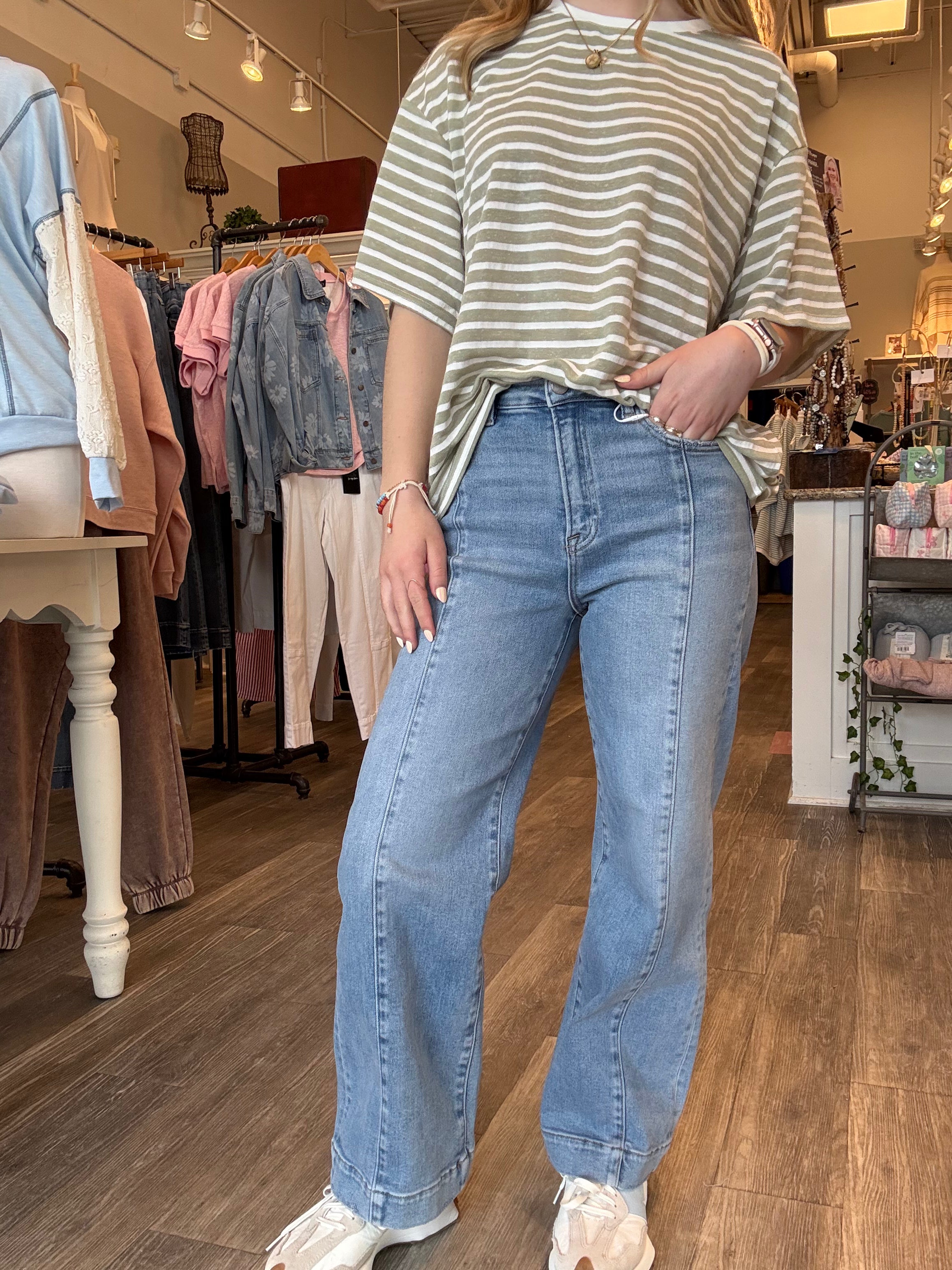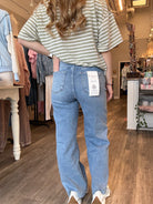 Elevate your denim game with these Risen High Rise Crop Jeans. Designed with a flattering high-rise waistband that elongates the silhouette, these cropped jeans hit right at the ankle for a modern, on-trend look. The classic denim construction offers durability and comfort for everyday wear, while the cropped length pairs effortlessly with sneakers, heels, or sandals. Perfect for creating versatile outfits that transition seamlessly from casual to dressed up. A wardrobe essential that combines style with timeless appeal.