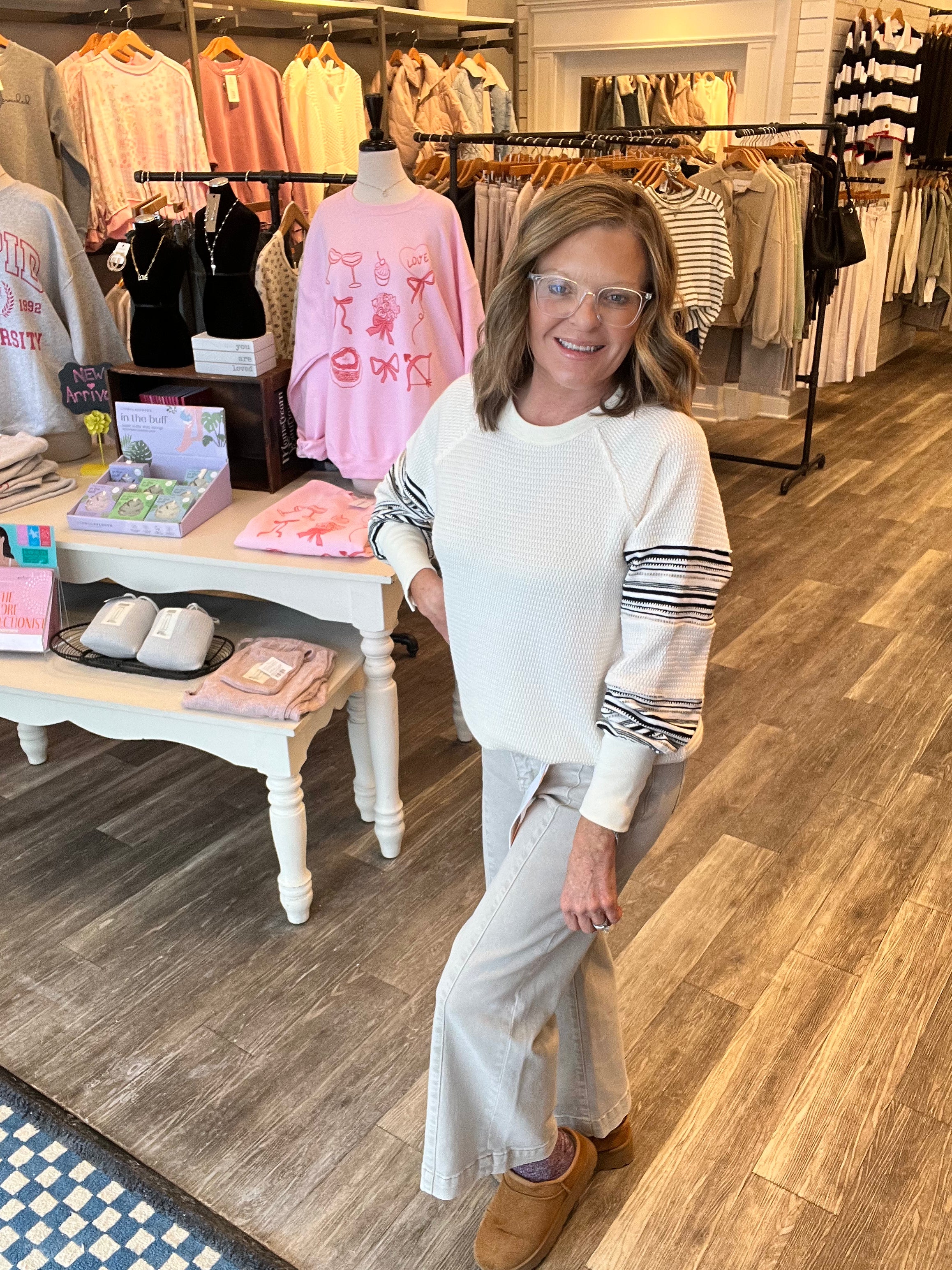 Elevate your everyday wardrobe with this Contrast Knit Top, featuring a textured waffle knit that adds visual interest and dimension to any outfit. The sophisticated color blocking creates a modern silhouette that flatters and elongates, while the breathable knit fabric ensures all-day comfort.