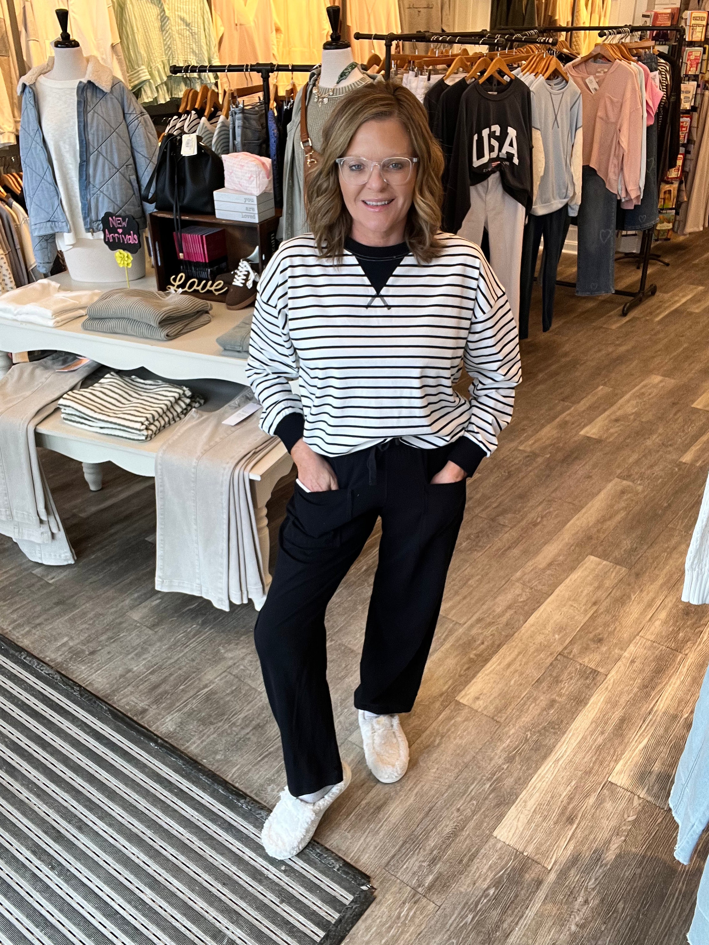 Cozy up in stripes with this laid-back pullover that's basically a hug you can wear. Soft, comfortable, and effortlessly cool—perfect for lazy days, coffee runs, or pretending you have your life together.